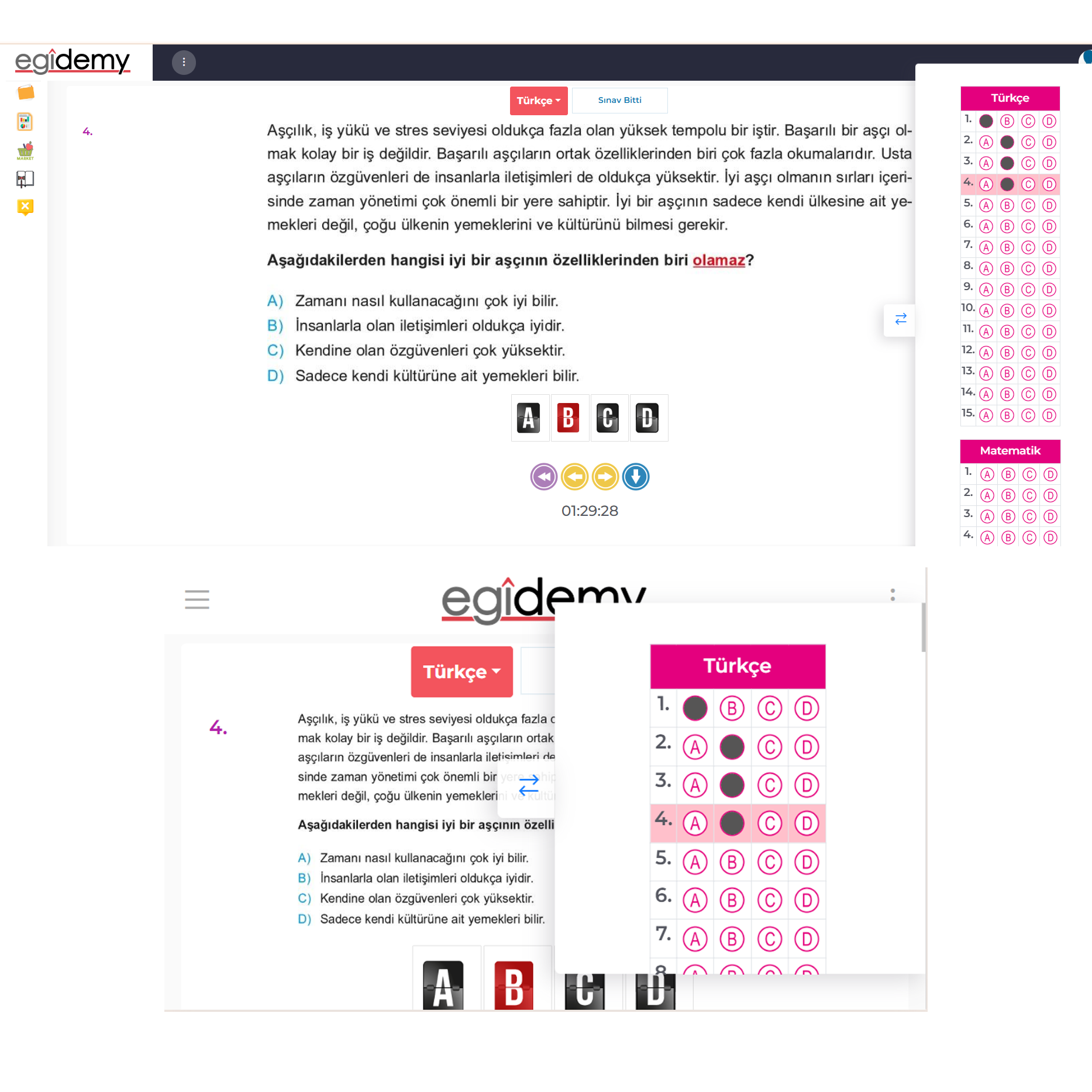 Basılı setlerimizin online uygulamasına egîdemy online sınav platformu üzerinden erişebilirsiniz. Öğrencimizin gelişimini, güncel sıralama raporları ve detaylı analizlerle kolayca takip edebilirsiniz. Online içerikler, basılı setlerle birebir aynıdır. Lütfen satın almadan önce elinizdeki basılı seti kontrol ediniz.